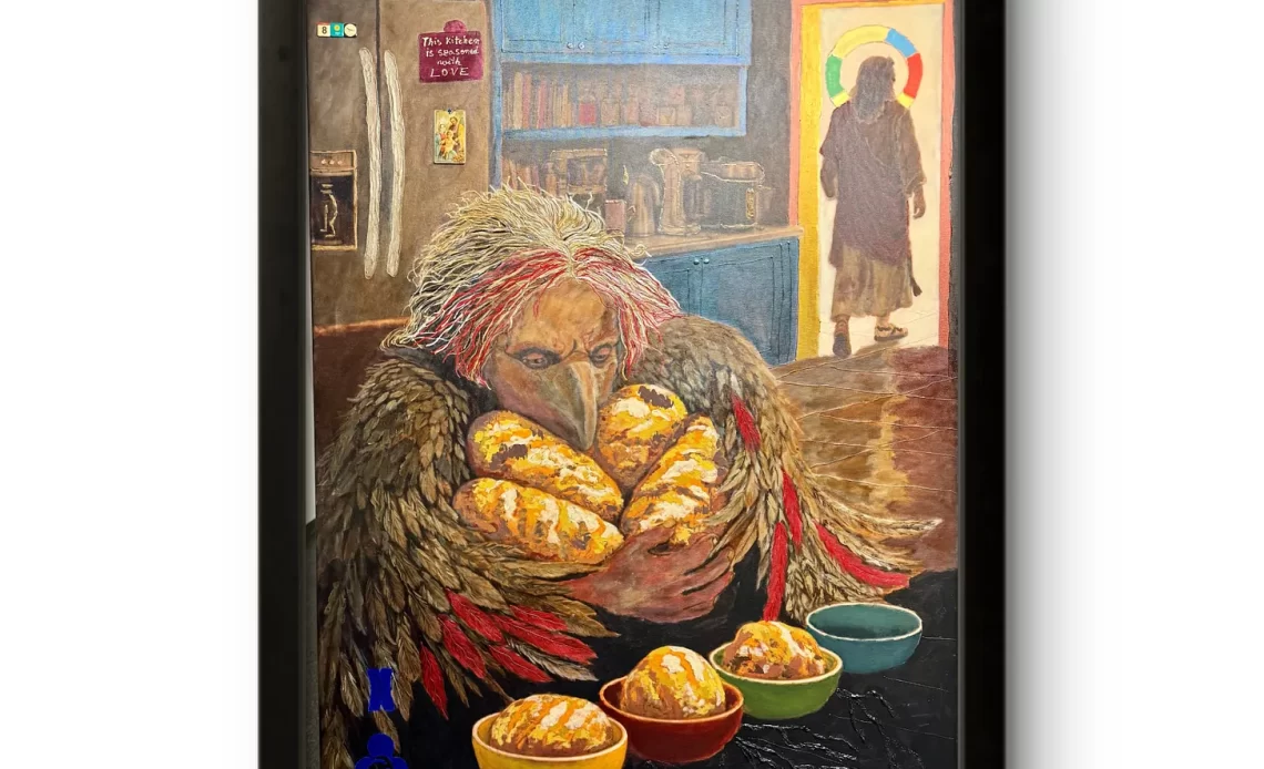 A şasea carte de filcǎi pe care Liviu Alexa a redesenat-o pentru expozitia personală de la galeria Kulterra din Bucureşti din 16 aprilie – 10 mai e dedicatǎ Gheonoaiei, personaj mitic în basmele româneşti asociat cu rǎutatea şi zgârcenia. Gheonoaiei i-a “alocat” cartea de “crǎițǎ” de treflǎ, alǎturi de Ciuleandra, Baba Dochia şi Muma Pǎdurii.