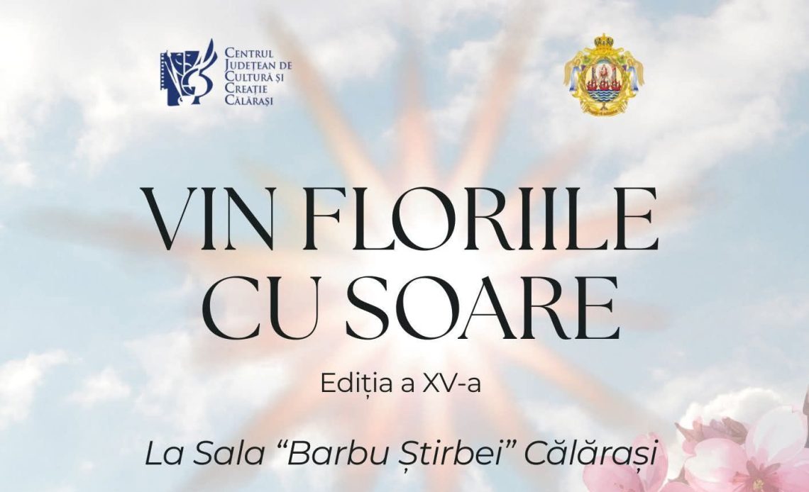 Consiliul Județean Călărași, prin Centrul Județean de Cultură și Creație Călărași, vă invită joi, 2 aprilie 2026, începând cu ora 18:00, la Sala „Barbu Știrbei”, la cea de-a XV-a ediție a spectacolului coral „Vin Floriile cu soare”, eveniment dedicat uneia dintre cele mai importante sărbători creștine – Floriile.